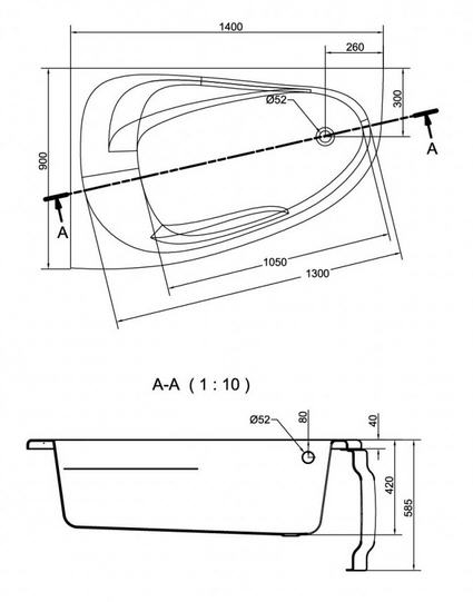 - Fürdőkád mélysége: 42 cm