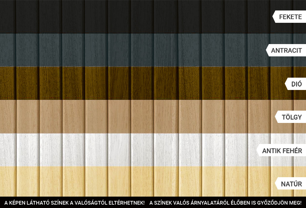 Prémium trópusi fából gyártott, csomómentes, teljesen vízálló előlapok – hat divatos árnyalatban: fekete, antracit, dió, tölgy, antik fehér és natúr.